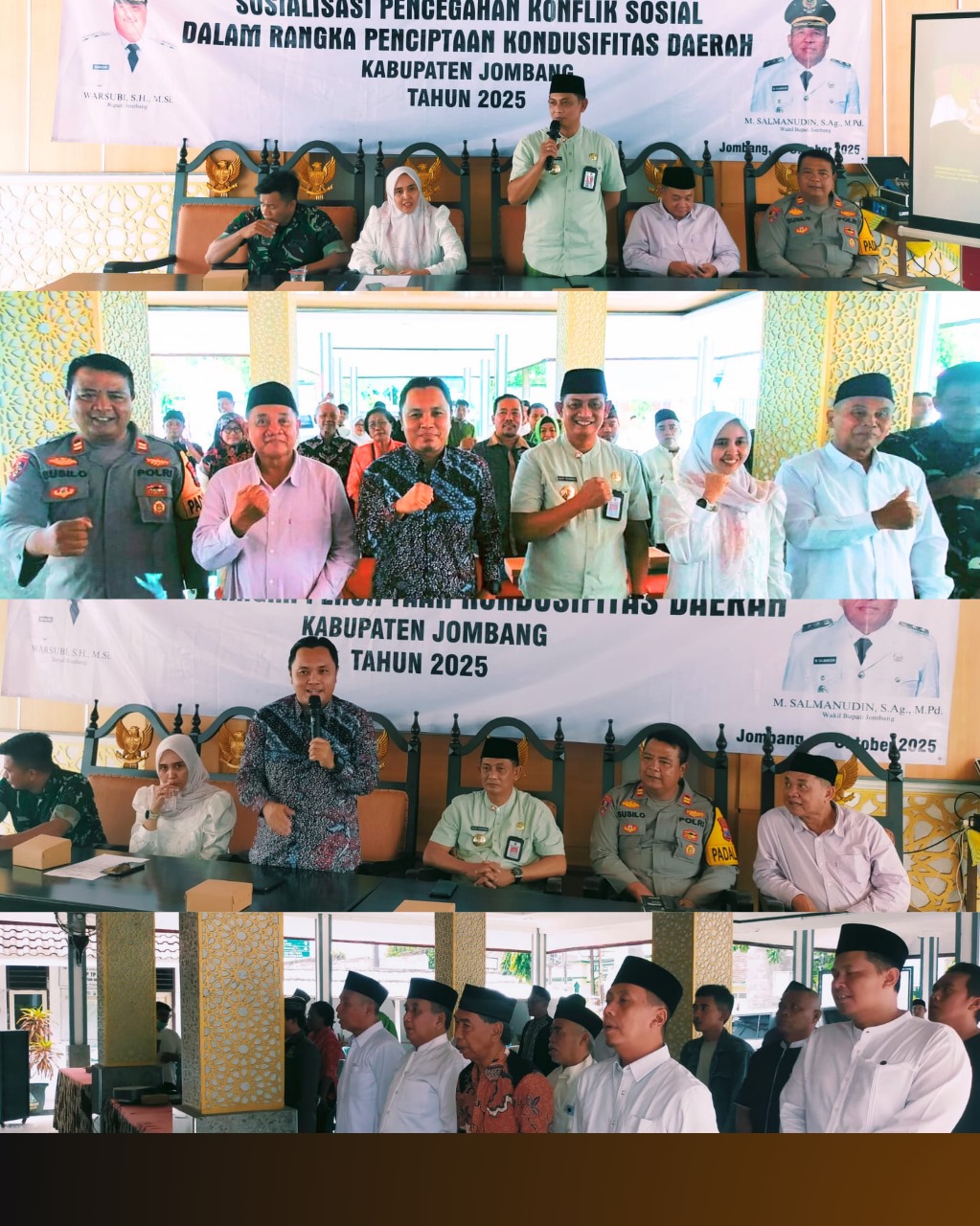 Jombang, 22 Oktober 2025 – Badan Kesatuan Bangsa dan Politik (Bakesbangpol) Kabupaten Jombang melaksanakan kegiatan “Sosialisasi Pencegahan Konflik Sosial Dalam Rangka Penciptaan Kondusifitas Daerah Kabupaten Jombang”. Kegiatan ini berlangsung di Kantor Kecamatan Ngoro dan dihadiri oleh Bapak Budi Winarno, S.T., M.Si. selaku Kepala Bakesbangpol Kabupaten Jombang. Bapak Donny Anggun, S.Sos dan Bapak Dr. Muhammad Farid, M.Si selaku narasumber.