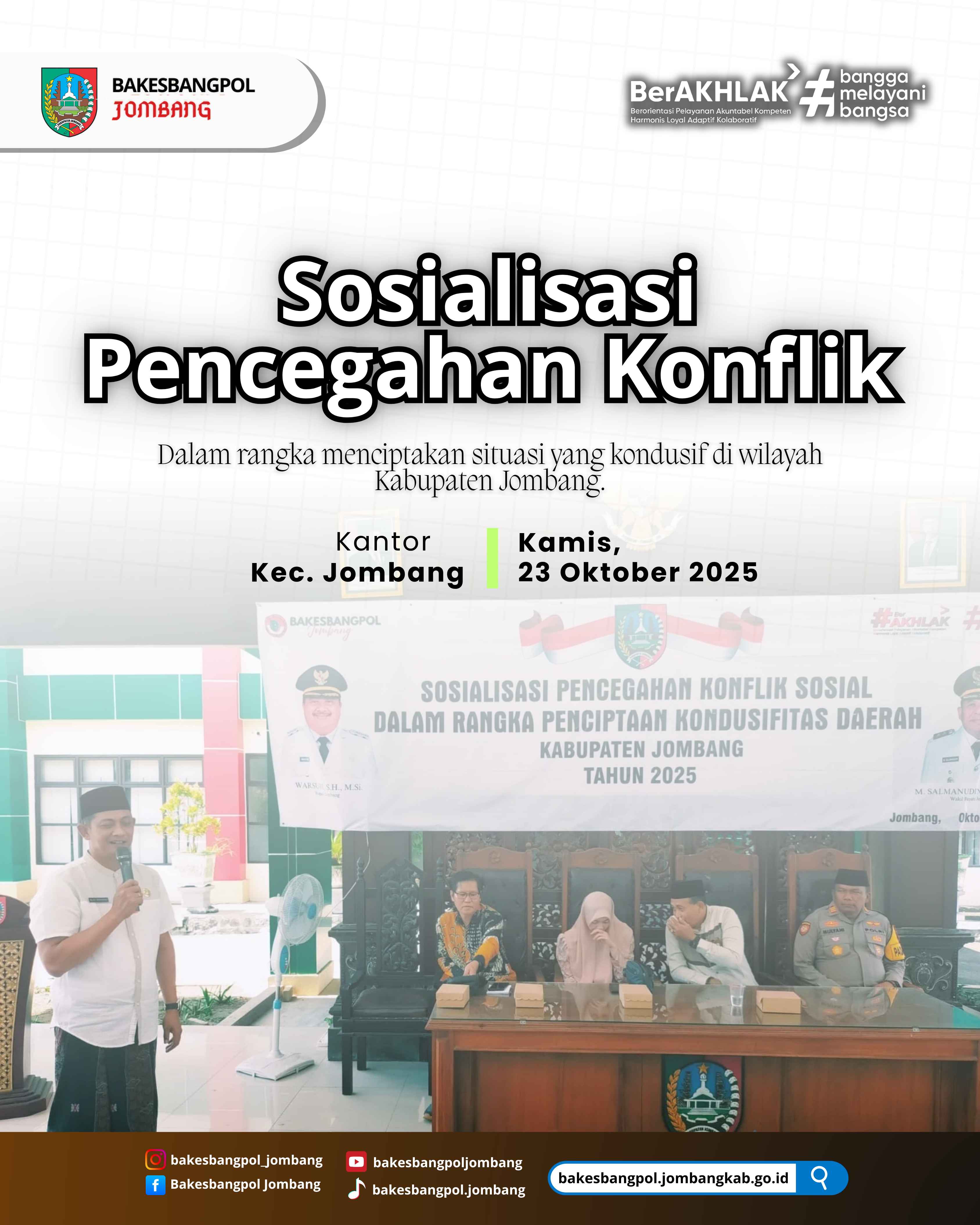 Sosialisasi Pencegahan Konflik Sosial Dalam Rangka Penciptaan Kondusifitas Daerah Kabupaten Jombang Tahun 2025 di Kantor Kecamatan Jombang