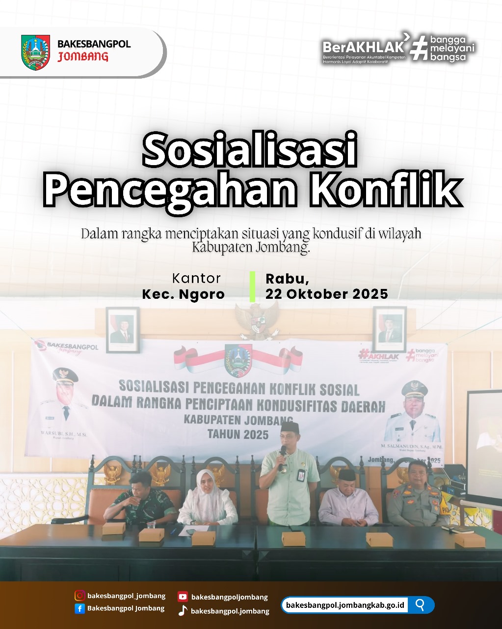 Sosialisasi Pencegahan Konflik Sosial Dalam Rangka Penciptaan Kondusifitas Daerah Kabupaten Jombang Tahun 2025 di Kantor Kecamatan Ngoro